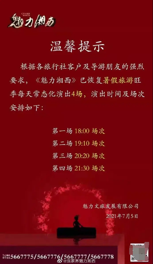 (六)7月22日:上午(10:50)到大峡谷,游玩后回酒店(15:22);到印象鲵宴饭店(15:56)就餐,饭后到魅力湘西(17:25)观演,步行回酒店。