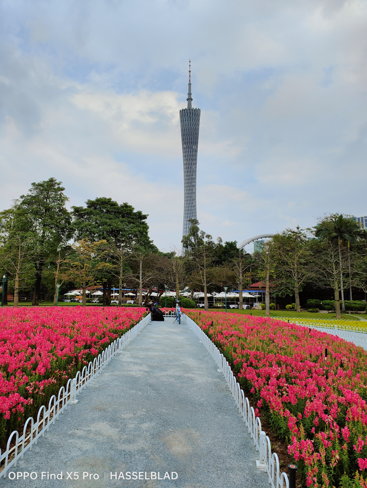 从下面的实拍样张对比中,可以看到在光线充足的条件下,两款手机的实际拍摄效果都很出色,无论是近处的花卉细节,还是远处的广州塔,都保留了很多的细节,第一眼看上去,样片的宽容度和解析力表现都很不错。不过两台手机的调色效果还是有点区别,OPPO Find X5 Pro的饱和度较高,看上去更加吸引眼球,iPhone 13 Pro调色看上去则比较暗淡一些,这让样片的观感更加接近肉眼所见。