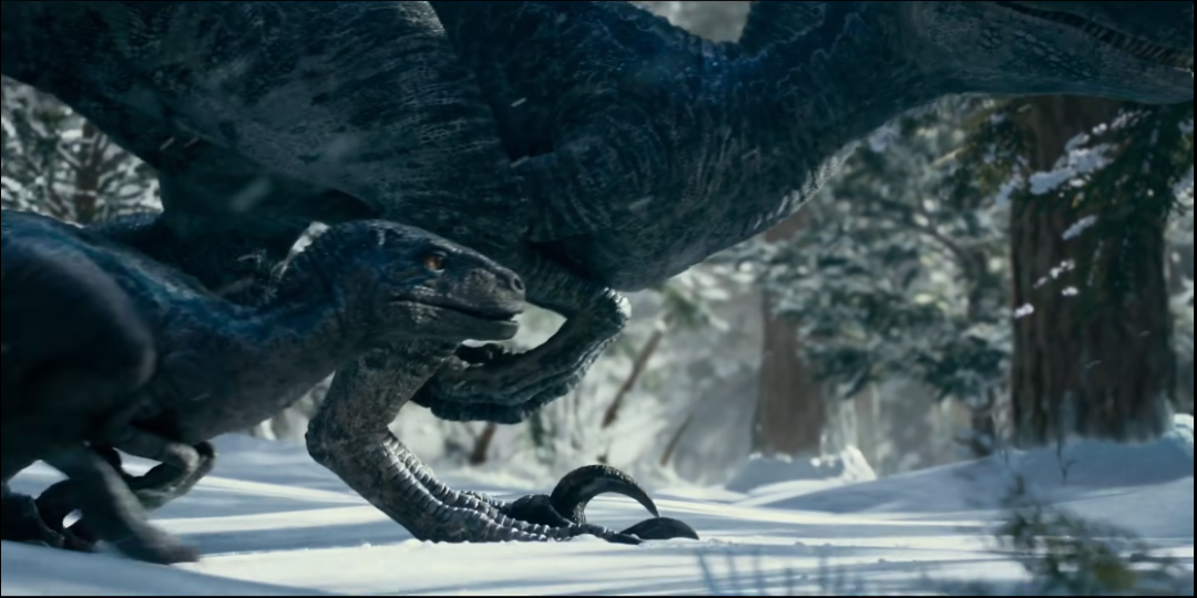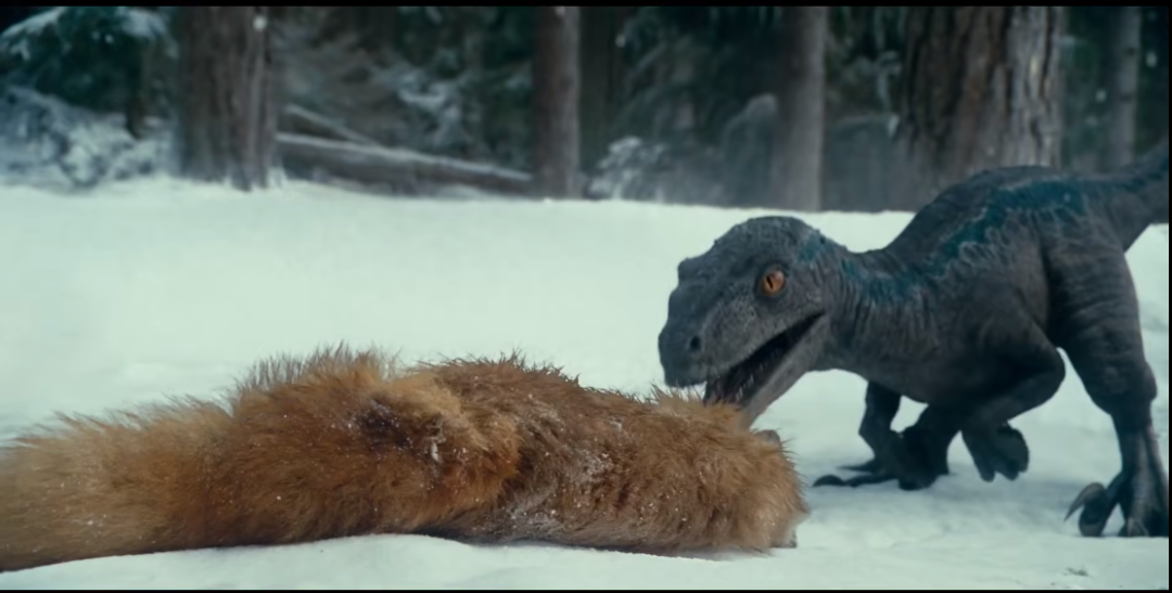 其实,在十几天前,《侏罗纪世界3》还放出了三段直接和冬奥会联动的短片,我们熟悉的“迅猛龙”小蓝“Blue”和霸王龙“老奶奶”就首先在越野滑雪场登场。