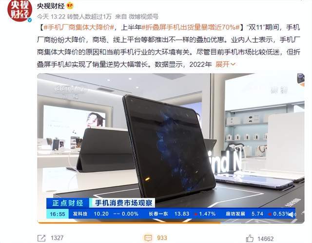 据央视财经报道,今年上半年折叠屏手机出货量暴增近70%,逆势增长,势头非常猛。双11期间,手机厂商开始抢夺市场,大部分折叠屏设备非常抢手,为什么折叠屏越来越受欢迎?