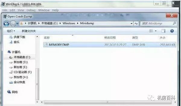 2、弹出打开文件窗口,我们选择系统目录下面的MEMORY.DMP文件。