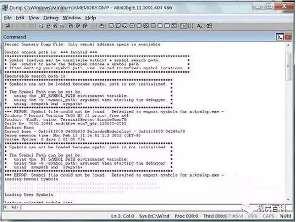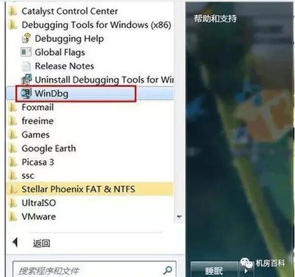 2. 利用工具分析MEMORY.DMP日志文件。首先打开我们要使用的工具: Debugging Tools for Windows (x86)-WinDbg