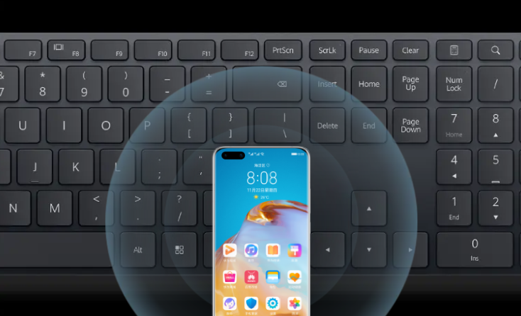 而MateStation B515配套的华为智慧键盘,可以说是该台式机的亮点之一。该键盘采用了指纹开机键合二为一设计,键盘右侧shift键自带NFC模块,内置了华为分享区域,手机只需轻碰该区域,无需数据线键盘即可以与电脑相连,进行多屏协同和传输文件等操作。