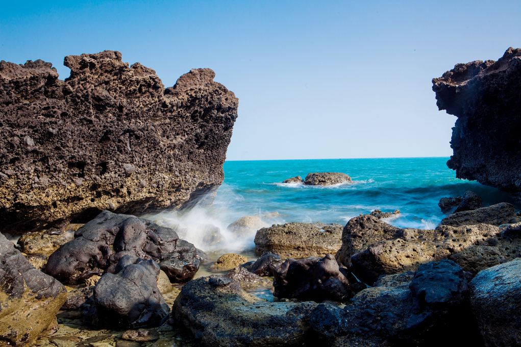 天晴时,海中珊瑚、各色海鱼如画显现。撒满五彩贝壳的洁净沙滩呈铲状,温柔地伸入大海母亲的怀抱。沿岸火山岩、海蚀岩,丰富、怪异而奇特。