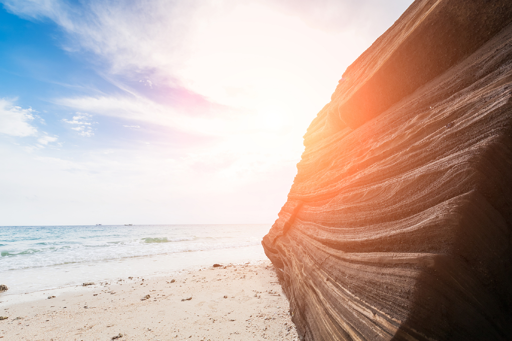 五彩滩是国内罕见的集海蚀崖、海蚀平台、海蚀洞于一体的地质景观带。景区内长达1.5公里的海岸几乎都发育着20-50米高的海蚀崖,崖面耸立,蔚为壮观。