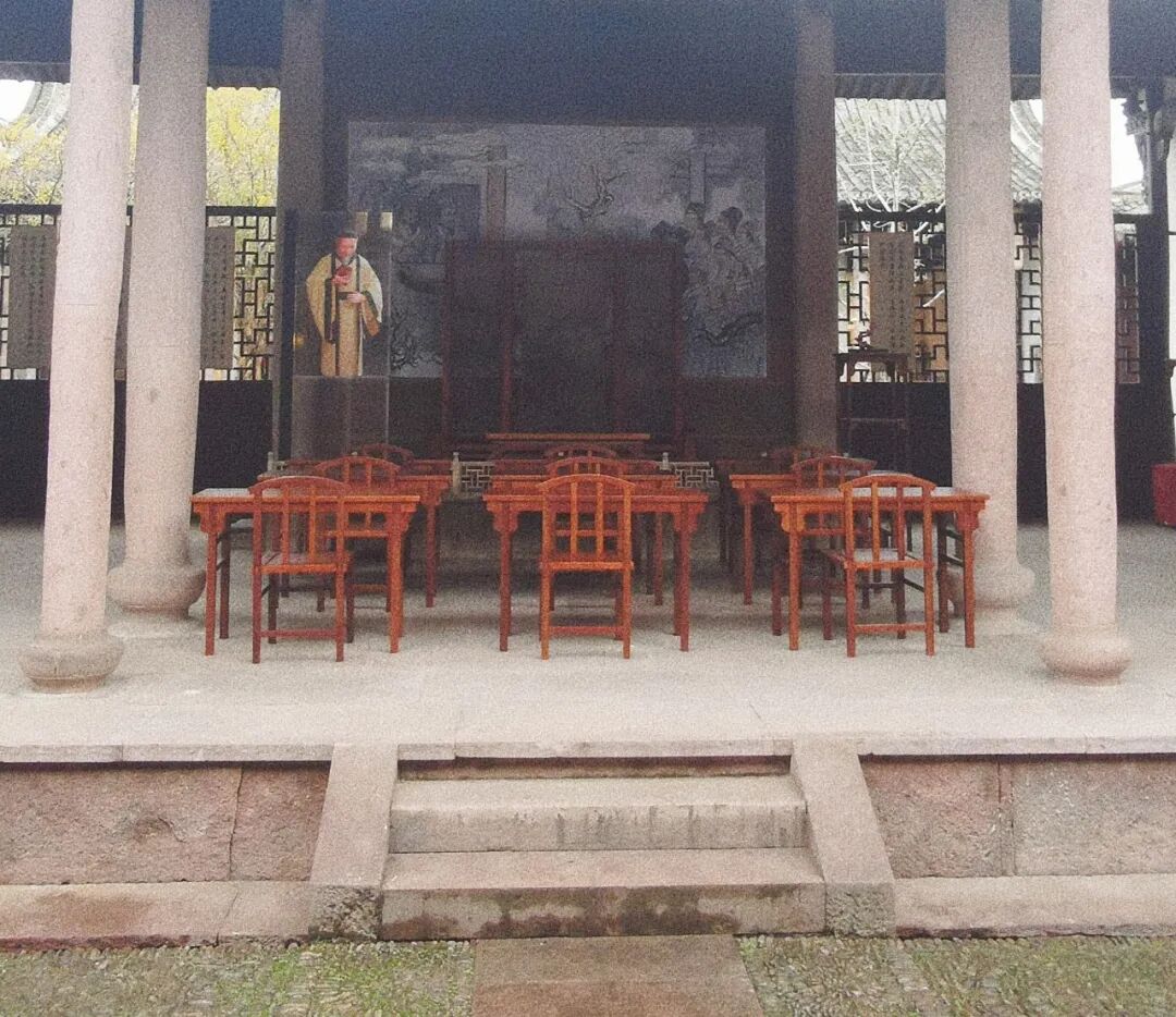 说起桐江书院,它和一位历史名家有着很深的渊源,便是朱熹。公元1156年,朱熹和王十朋相聚皤滩,一见如故,互相探讨诗文。朱熹与王十朋在“方氏义塾”讲学与就读的消息传开后,四方学士纷至沓来,这也大大激发了方斫等人兴建书院的热情。朱熹于淳熙九年(1182)提举浙东茶盐公事兼主管台州崇道观,对桐江书院的办学非常认可,先后手书了“桐江书院”和“鼎山堂”两匾相赠。