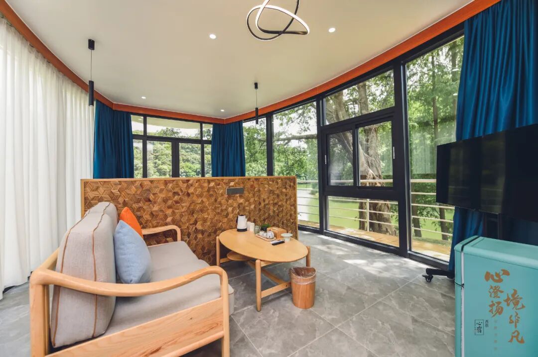郁郁葱葱的苗圃园,静谧幽深的东天湖,设计巧妙的民宿建筑,这一切所呈现的视觉效果与氛围,总能让人心绪宁静。 在湖光山色中给心灵来场悠闲度假!目前,心宿已开放9间设计风格令人眼前一亮的独栋客房,分为玲珑房和船坞两大类型。高山森林、球形木屋……小住一晚,别有一番结庐隐居的意境。 玲珑房 船坞房 山中的岁月总是很慢,在心宿,你可以在大草坪上肆意奔跑,又或静坐于某个角落享一杯清茗,日赏山林夜观星辰,好不痛快…… 入住指南 地址:广东省佛山市南海区西樵镇西樵山风景名胜区内 订房热线:0757-66600011、13929927603(或识别下方二维码添加客服微信即可详询、预约) 住进山舍、住进国家森林公园,每一扇窗外都是小清新的樵山胜景~ 入住指南 地址:广东省佛山市南海区西樵镇西樵山风景名胜区内 订房热线:0757-86822228、18902898886(或识别下方二维码添加客服微信即可详询、预约) 翌日醒来,还能到南海湾森林生态园徒步休闲,挑战火爆全网的溯溪运动! 入住指南 地址:广东省佛山市南海区西樵镇庆云大道 订房热线:18128766408 、13380275202(或识别下方二维码即可订房) 烟火气十足,特色摊位云集的观心生活π集市,即日起至2023年2月5日在观心小镇开市。 丰盛的酒店自助餐出品,能让你品尝到各式中西风味 酒店自助餐逢周五、周六及节假日开餐,时间:18:00-21:00,须至少提前一天预订(0757-86823688)。 入住指南 地址:广东省佛山市南海区西樵镇锦湖大道2号 订房热线:0757-86823688(或识别下方二维码即可订房) 观心小镇内还有一家私藏级的度假美宿——观心生活馆,是小镇重磅打造的养生文化体验馆,有着大隐于市的精致感。 这里有极具设计感的复式套房,公共区域、私密区域互不干扰,是三五知己出游度假的不二之选。 房间还拥有公寓式配套,入住充满着家的气息。 入住指南 地址:广东省佛山市南海区西樵镇锦湖大道2号6号楼 订房热线:13392233115 传统的建筑 与自然的风景相互映衬 可远眺山景 近触园林的西樵山大酒店 “十年,遇见你,遇见大地艺术”H5已上线,除了抽奖送微信红包、西樵山门票、线下粉丝活动外,还可以查看艺术节资讯、周边吃喝玩乐攻略等,带你一站式玩转艺术节!心宿泳池【扑通】。