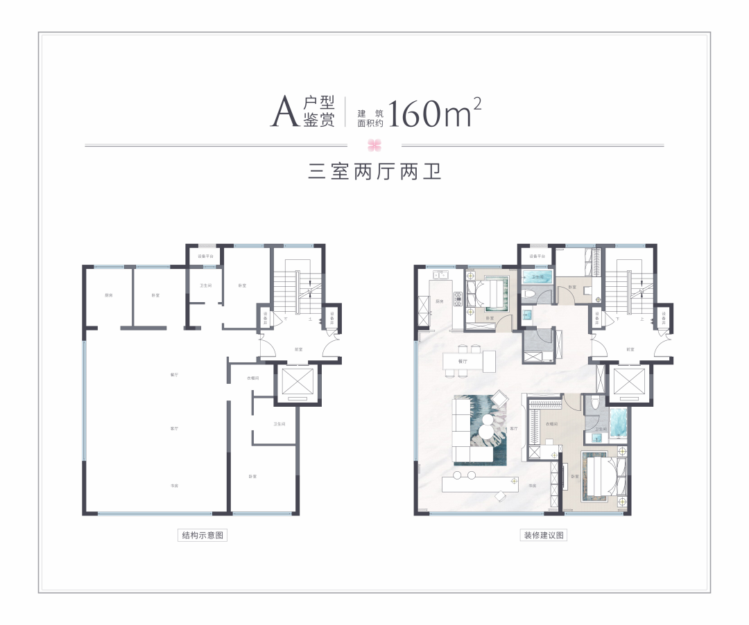 建面约142-160㎡宽境洋房,与低低的江南院墅排列在一起,享受更多的绿意风景。全面屏立面、巨幕宽厅、270°双面采光、创新五连厅,且都可拓展更多空间。