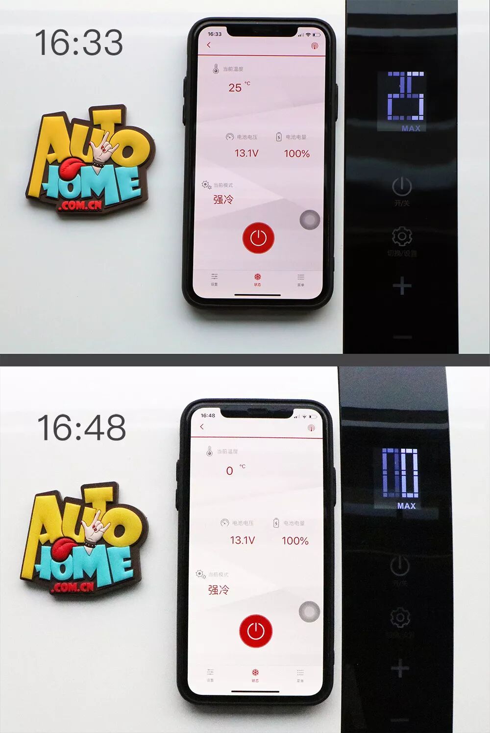 英得尔冰箱的eco模式在电池供电的情况下可尽量延缓温度升高,高温的车内也能正常工作,林先生可以通过手机实时关注冰箱内温度变化,确保药品不会因温度升高而变质。