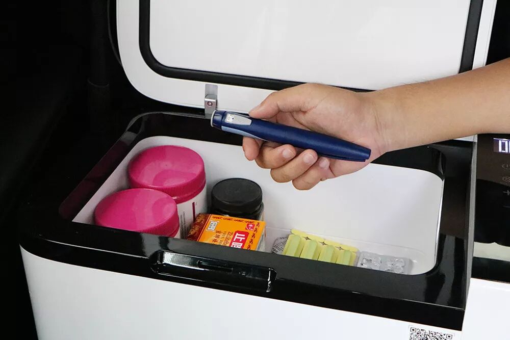 我们的另一位车友林先生患糖尿病多年,采用注射胰岛素的治疗方法,但由于经常出差,药品的保存问题让他头疼。普通的半导体制冷冰箱只能比环境温度降低十几度,夏季车内高温时,冰箱温度也会急剧上升,根本无法做到胰岛素2℃—8℃的存放要求,与客户会面时,又不方便将冰箱带入室内。