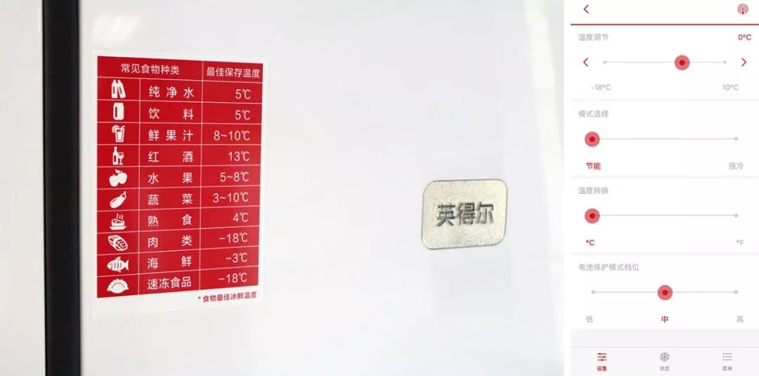 英得尔就是一款能让你随时吃上雪糕、冷饮的冰箱。它采用了德国进口的SECOP直流变频压缩机,可以像家用冰箱一样低至-18℃,并且可以精确调节到每一度。-18℃冷冻的肉食,-3℃保存的海鲜,0℃—10℃保存的水果,路途上的食物们,都有自己最佳的保存温度。拎下车后,只需一根交流电源适配器,就能在家使用,不少美女还用它来装自己心爱的化妆品。