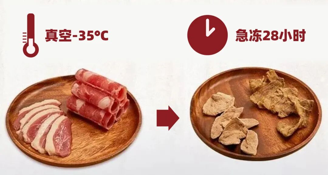 为了保证食材足够新鲜,自游煮盒自热火锅采用了真空 -35℃ 冷冻干燥技术,将水分剥离,保留了风味的同时也更容易携带和保存。