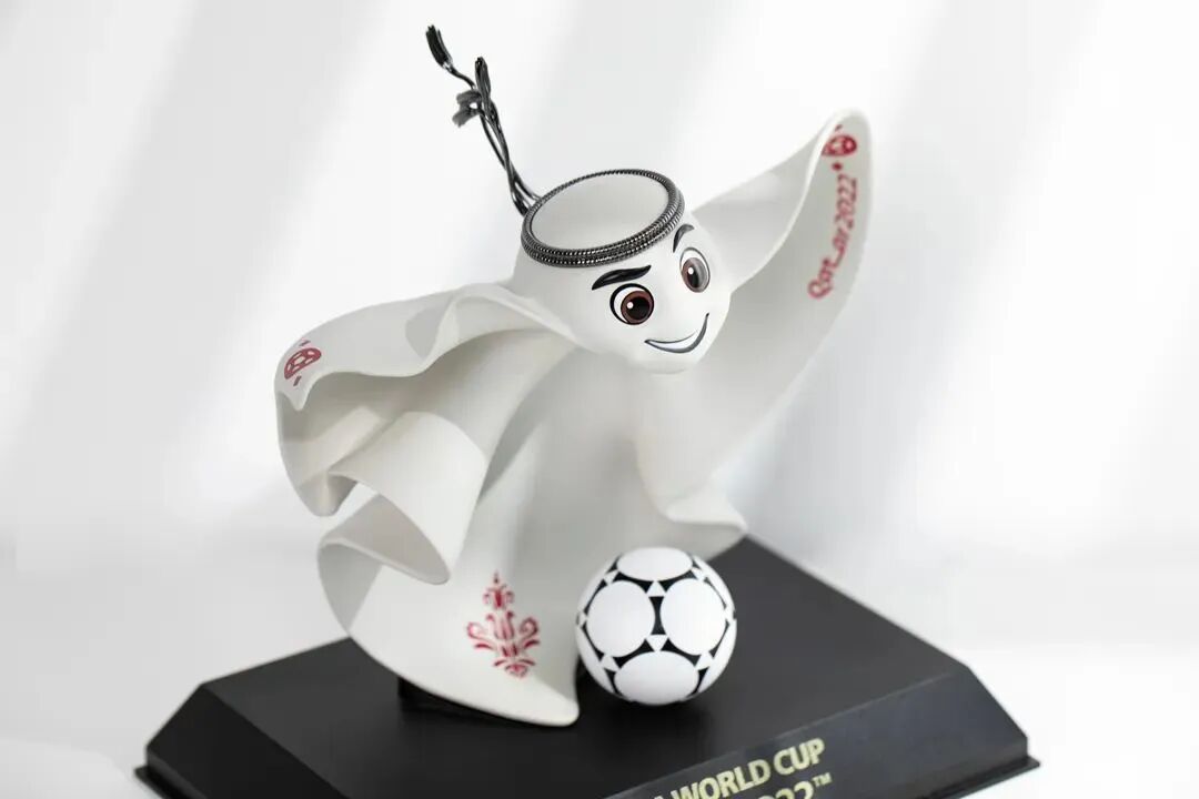 不同于往届世界杯的活体形象,今年卡塔尔世界杯是以「阿拉伯人常戴头上的头巾」为灵感原型。