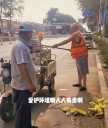 许是水果买卖也不好做,在端午前后,谢宁又公布了一则自己的视频。视频中他穿着环卫工人的橙色马甲,拿着铲子在街边卖力地清洁,说自己如今转行做环卫工人了,也希望大家能够爱护环境。