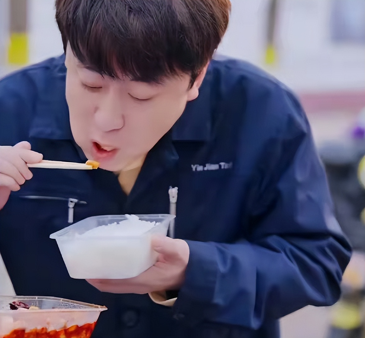 而且当出租车司机虽然时间比较自由,但总是会错过吃饭时间,所以这一天他已经忙碌到没办法去找一家店吃饭了,就买了份盒饭,非常接地气地站在街头吃起来,路人抛来的目光很多,可他完全没有在意。