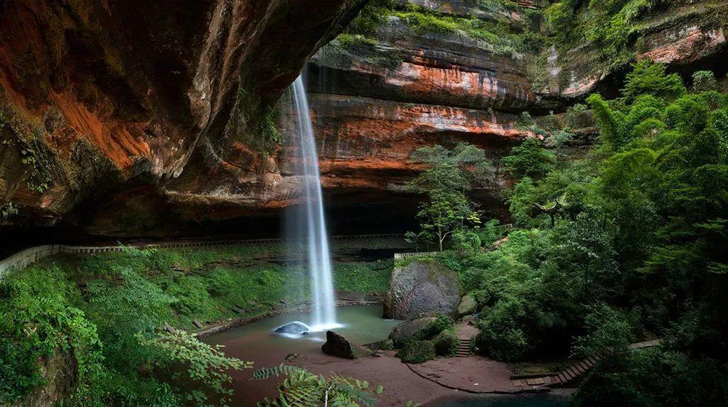 沐川竹海地属丹霞地貌,在绵延起伏的山峦河谷间有成片慈竹10万余亩,“竹海”常年空气清新,有“天然氧吧”的美誉。