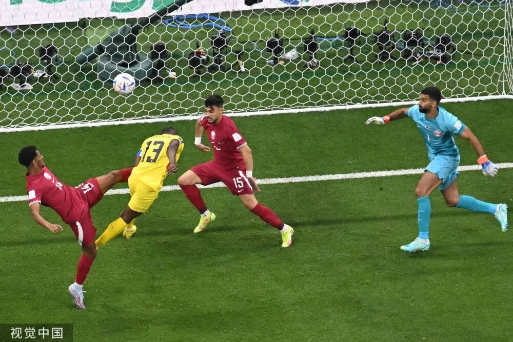 第16分钟,恩纳-瓦伦西亚突入禁区被卡塔尔门将希卜扑倒,主裁判出示黄牌并判罚点球,VAR复审确定点球判罚,这是本届世界杯第一粒点球,恩纳-瓦伦西亚亲自操刀主罚命中,1-0!恩纳-瓦伦西亚打进本届世界杯第一粒进球。