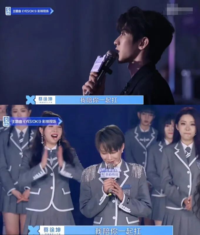 属虎的蔡徐坤为属牛的刘雨昕加油打气
