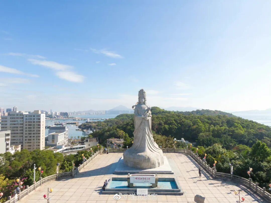 上图来源 微博@洋光摄客这也是全世界第二高的妈祖像,也有着我国第一个介绍妈祖生平、传说、圣迹的艺术馆,参拜一番,依稀会触碰到粤东百姓对于出海平安,满载而归的满满祈愿。