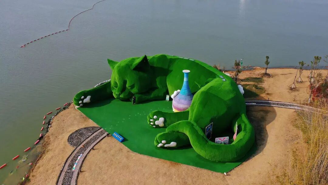 在江苏淮安,也有个非常出片的地方。这里被誉为中国最治愈的地方,这就是淮安白马湖的肥猫岛。如果喜欢猫的朋友,一定要到这里走一趟。一只巨大的肥猫横卧在湖水之上,非常适合拍照。而岛上有100只猫咪,每只猫咪都有自己的名字,都是可以让你撸的。如果哪天你觉得不开心了,就到肥猫岛去撸猫吧,你一定会被这里的猫咪治愈的。