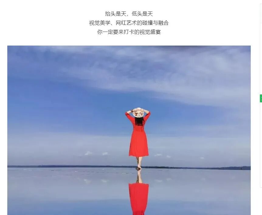 最近有个新晋的网红景点 关注很高 ——天空之镜 打开某红书看看 大家拍的照片就“俩”个字——真好看! 看看这蓝天! 看看这白云! 看看这完美的倒影! 就问你心动不心动?