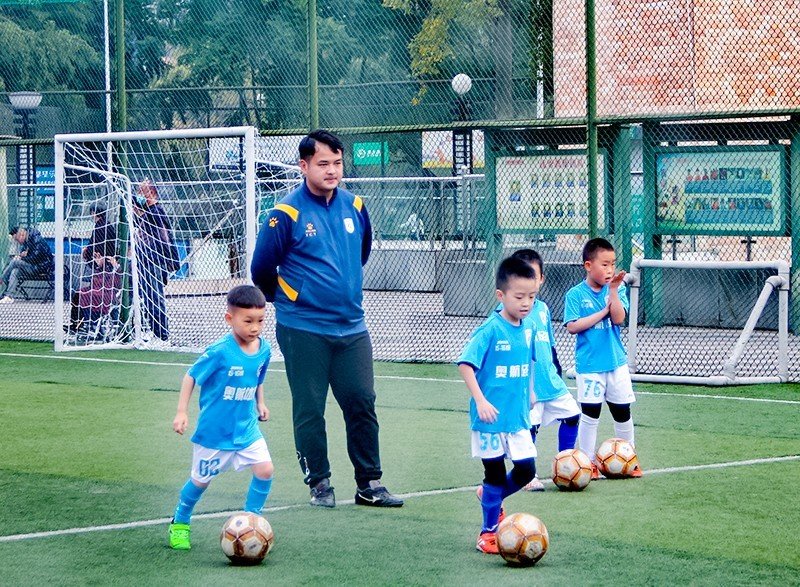 “往左边突破后用左脚射门,右边突破后用右脚射门,踢出去的时候要快速用力......”11月20日下午,在西河体育公园足球场上的,奥航各梯队的小球员们在各自教练的指导下进行训练。